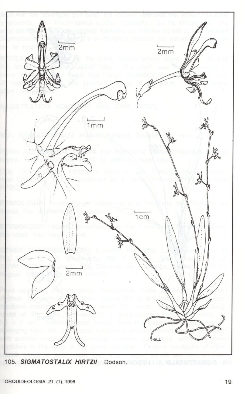References W3 Tropicos, Kew Monocot list , IPNI ; *Orquideologia Vol 21 #1 1998 Doson & Drawing fide; Rudolf Schlechter Die Orchideen Band 1C lieferung 44-45 pg 2763 - 2898 Brieger 2001; Native Ecuadorian Orchids Vol V Dodson 2004 drawing/photo fide to Hirtz photo; AOS Bulletin Vol 77 No 12 2008 as Oncidium hirtzoides