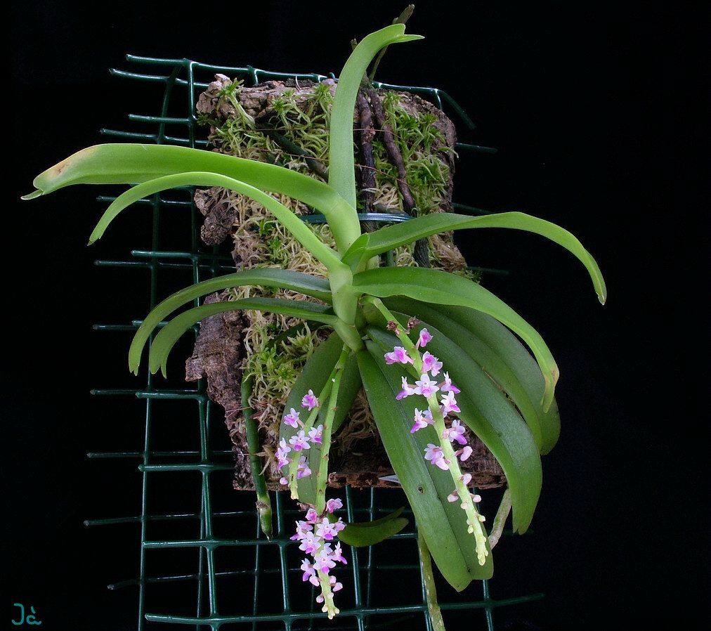 Found in the Chinese Himalayas, western Himalayas, Assam, Bangladesh, India, eastern Himalayas, Nepal, Bhutan, Sikkim, Myanamar, Thailand, Laos, Cambodia, Vietnam, Malaysia and Borneo in lowlands and low montane riverine forests at elevations [200 to 300, Borneo] below 1300 meters as a small sized, hot to warm, pendant growing epiphyte with an elongated, branching, turning pendulous stem carrying several linear, axillary, unequally and obtusely bilobed apically leaves that blooms in the summer through winter on an lateral, simple, 2 3/4" to 6 3/4" [7 to 17 cm] long, densely many flowered inflorescence with triangular-ovate, acute to acuminate floral bracts and the fleshy, successively opening flowers arranged in a spiral