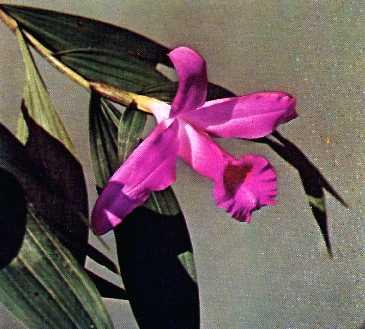 Found in Brazil as a medium sized terrestrial with an erect stem enveloped by leaf-bearing sheaths carrying elliptic, acute, plicate, gradually narrowing below into the petiolate base leaves that blooms on a terminal, successively few flowered inflorescence