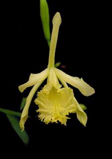 Found in Bolivia and Peru at elevations around 1200 to 3100 meters as a medium to large sized, warm to cool growing terrestrial with caespitose, leafless below leafbearing above stems completely enveloped by tightly adpressed, imbricating sheaths and carrying lanceolate, suberectly spreading, plicate, long-acuminate, cuneate below into the base leaves that blooms on lateral from the leaf axils, few branched, loosely few flowered inflorescence with short-lived, successive, fragrant flowers.
