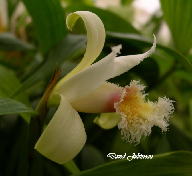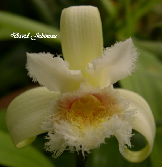 Found in Peru in cool, very wet montane forests, around 1850 meters as a medium sized, cool to warm growing terrestrial species with slender, leafy stems carrying elliptic-lanceolate, acuminate, plicate, basally clasping leaves and blooms in the fall on a subsessile, single flowered inflorescence with short-lived, fragrant flowers.