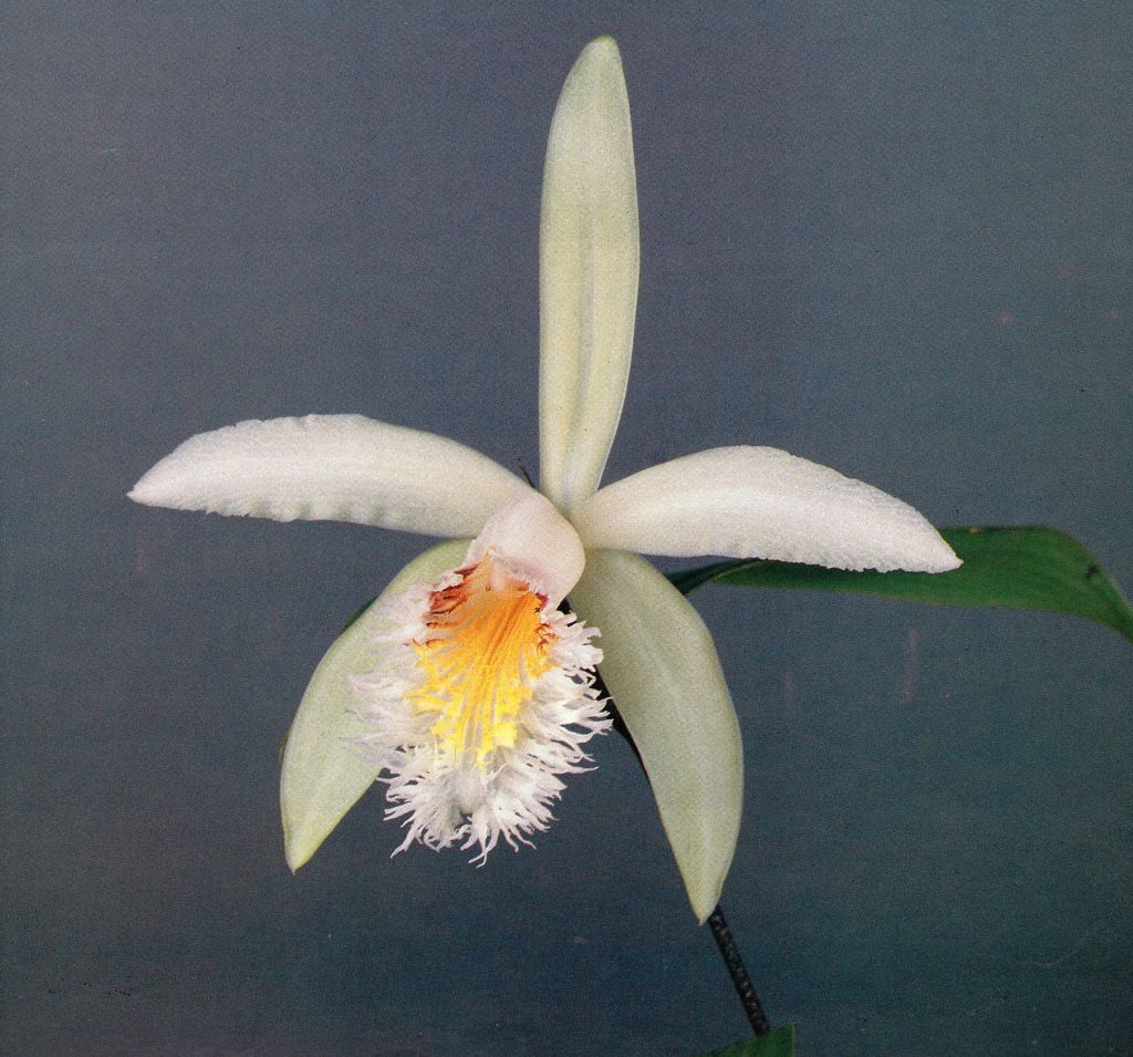 Found in Colombia without collection data [1000 to 1800? meters] as a medium sized, cool growing terrestrial with clustereed, erect, purple spotted stems carrying in the upper half, elliptic-lanceolate, somewhat acuminate, plicate leaves that blooms in the summer on an ellipsoid, generally with a foliaceous bract, 1 to 1.2" [2.5 to 3 cm] long, successively 1 to 2 flowered inflorescence.