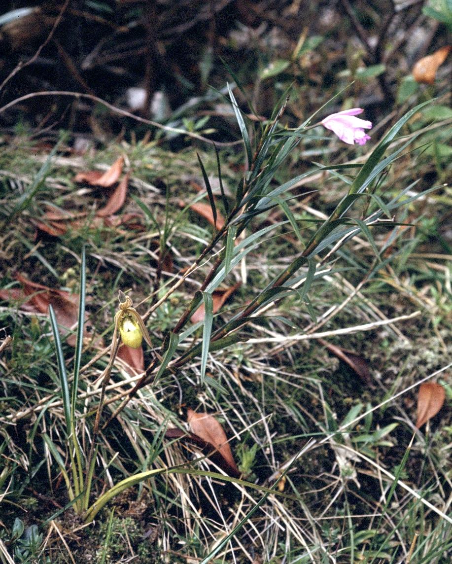 The photo of Sobralia stenophylla also depicts a Phragmipedium ion the lower left corner.