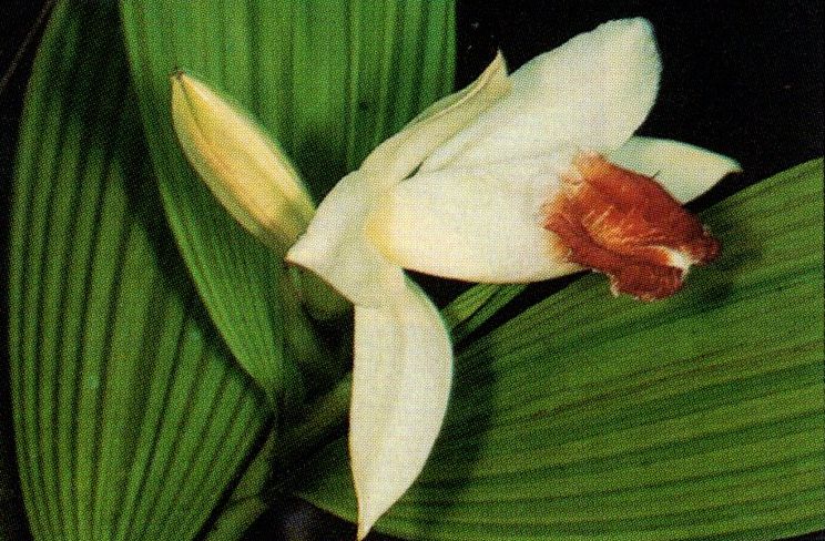 Found in northwestern and southeastern Ecuador on roadcuts and embankments at elevations of 550 to 1700 meters as a giant sized, warm to cool growing epiphyte or terrestrial with a short rhizome giving rise to an erectm cane-like stem enveloped basally by clasping sheaths and carrying above, elliptic, chartaceous, acuminate apically, distichous, heavily veined nbeneath, baslly clasping leaves that blooms in the late fall and early winter on a terminal, through a cone-like structure, successively single, several flowered inflorescence