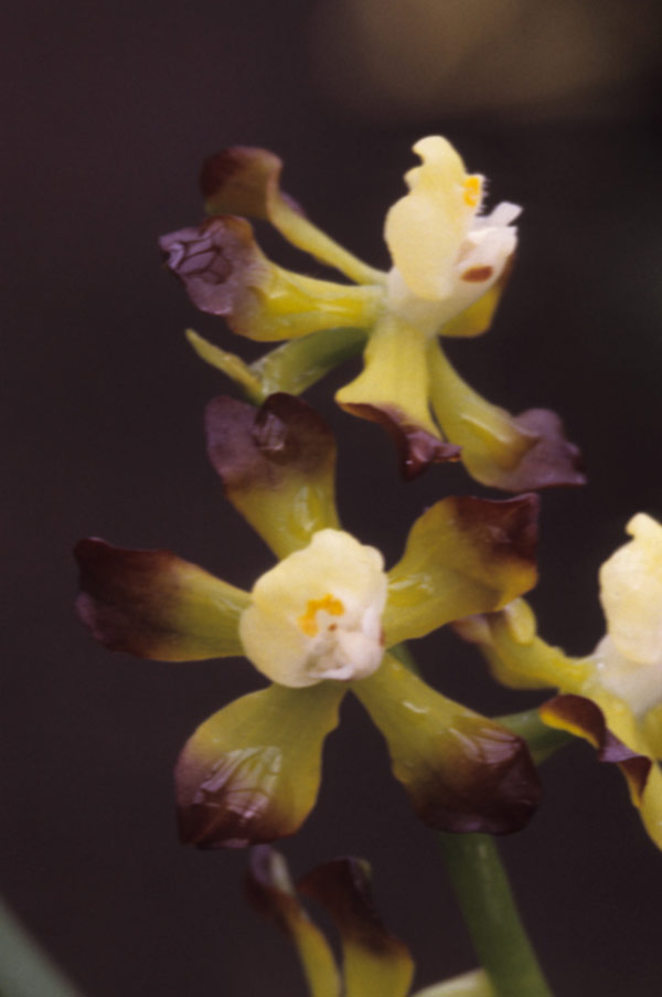 Synonyms Odontoglossum peruvianum (Schltr.) Dalström 2012; Oncidium flavobrunneum (Senghas) M.W.Chase & N.H.Williams 2008; Oncidium peruvianoides Chase & NH Wms. 2008; Solenidiopsis flavobrunnea Senghas 1989; Solenidiopsis peruviana (Schltr.) D.E.Benn. & Christenson1994; Solenidium peruvianum Schltr. 1921
