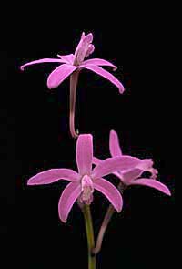 Found in Minas Gerais Brazil on horizontal ledge with sand deposits at about 1200 meters elevation as a medium sized, cool growing rupicolus orchid with elongate, 4 to 6 internoded, cylindrical, basally thickened, attenuate towards the apex, light green often suffused in reddish purple pseudobulbs enveloped by tight sheaths and carrying linear-lanceolate, strongly leathery, slightly transversely rugose, lightly boat shaped, slightly reflexed apically, medium green often purple pigmented on the margins and underneath leaves that blooms in the late winter and early spring on a terminal, erect, to 24" [to 60 cm] long, successively to 8 flowered inflorescence with flattened, linear-oblanceolate, slightly ventricose sheaths and triangualar floral bracts.