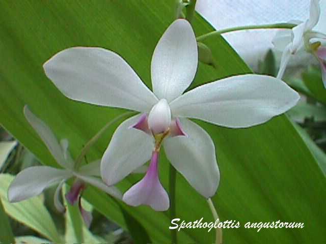 Found in New Caledonia along embankments, scrublands and in grasslands as a large to giant sized, warm to hot growing terrestrial with very long, plicate leaves that blooms on a 2 1/2' [75 cm] long, erect, basal, racemose few to many flowered inflorescence occuring in the fall. This species is a synonym of or is allied to and very similar in all parts to Spathoglottis plicata and the major difference is in the size of all parts including the flowers.