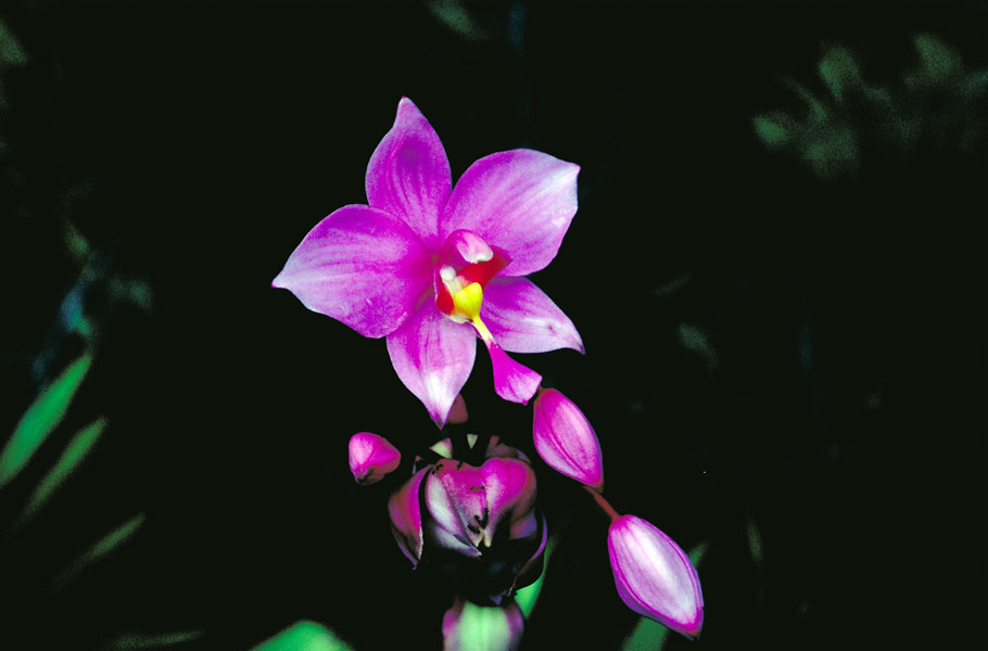 Schlechter states that the flowers are dark violet pink with a yellow callus on the lip with the lateral lobes brownish red and the front lobe dark red.