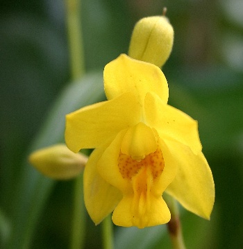 Found in Xizang province of China, Nepal and the higher eastern Himalayas, Sikkim and Bhutan on moist moss covered rocks in dense mixed forests and on wet roadside banks with scattered scrub at elevations of 1950 to 3650 meters, as a miniature sized, cool to cold growing terrestrial- lithophyte with small compressed, globose-ovoid pseudobulbs enveloped basally by fibrose sheaths and carrying 1 to 2 plicate, distichous, linear to oblong, acuminate, sessile leaves and blooms in the mid-summer on a 4" [10 cm] long, 1 to 3 [rare] flowered inflorescence and drops the leaves in mid September when the plant should be kept dry [just like Pleione] until new growth appears in the late winter to early spring.