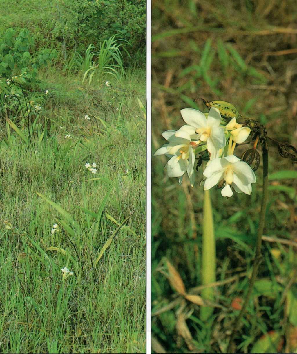 Found in the Carolinas and the Marianas Islands at elevations below 100 meters as a medium sized, hot growing terrestrial that blooms in the winter on an erect, simultaneously several flowered inflorescence.