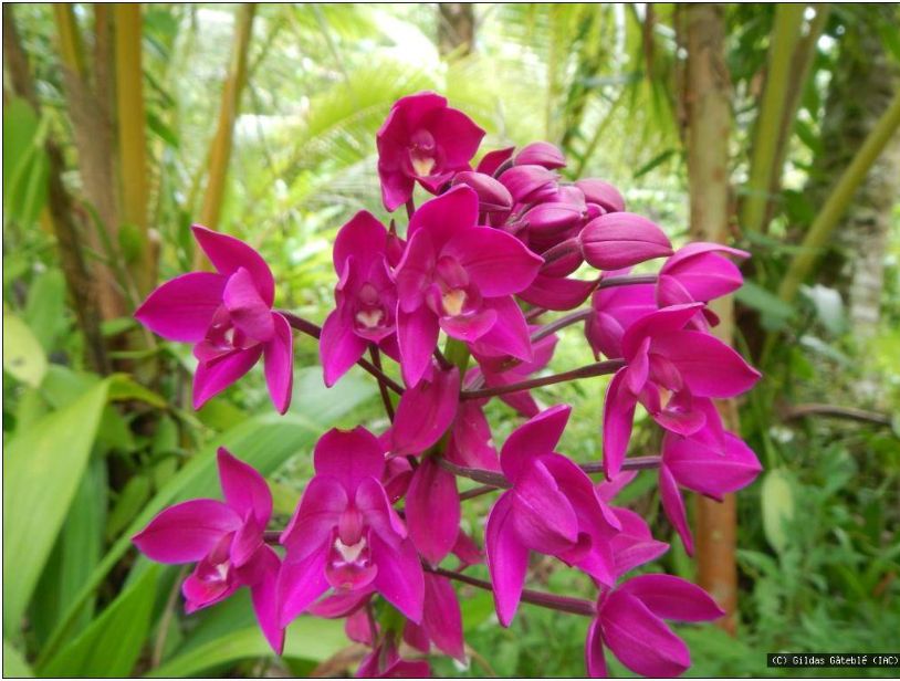 Found in New Caledonia and Vanuatu on open grassy slopes and periodicly burnt hillsides at elevations around 700 meters as a large sized, warm growing terrestrial with ovoid tpo globose pseduobulbs carrying 3 or so, plicate, erect, elliptic, acute leaves that blooms in the winter and spring on an erect, glabrous, to 36" [to 85 cm] long, 6 to 20 flowered inflorescence.