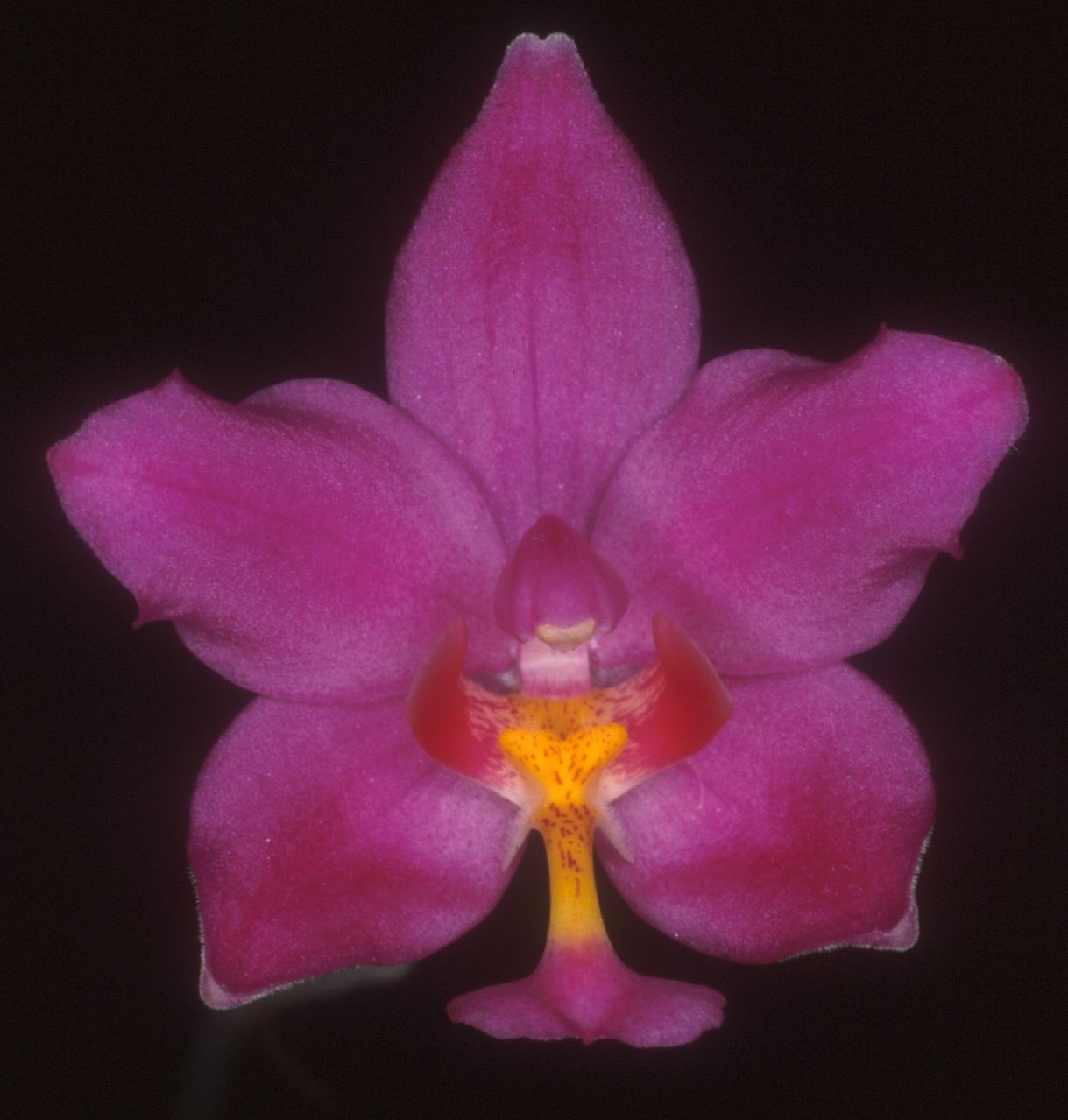 Found in New Guinea in grasslands, rocky hillsides, and in gullies from sealevel to 1200 meters in elevation as a medium to large sized, hot to cool growing terrestrial with globose pseudobulbs that lay on the soil surface carrying 4 to 5, plicate leaves and blooms on a basal, 40" [1 meter] long, many successively flowered inflorescence with about 6 flowers open at any one time and can occur at most any time of the year.