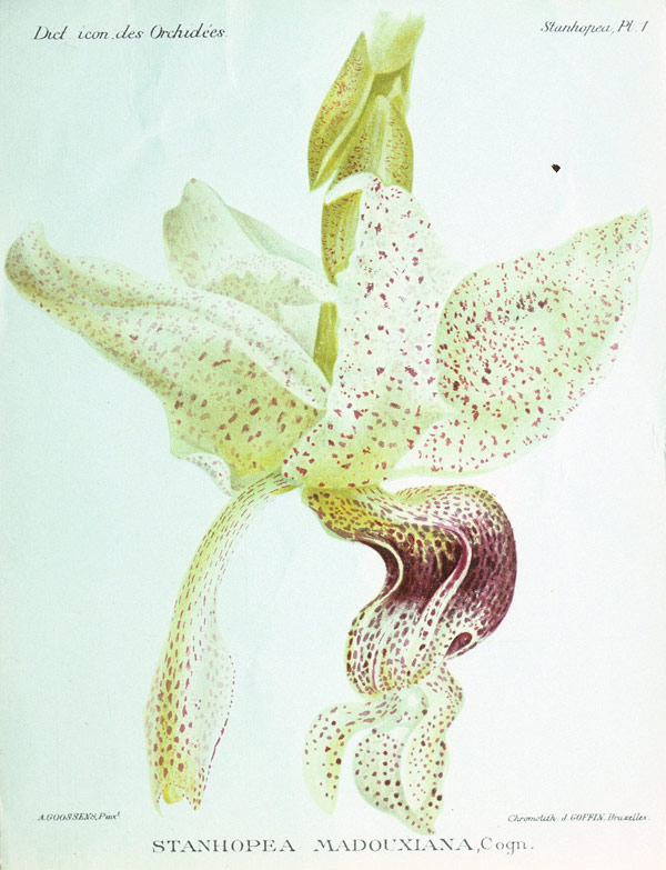 Stanhopea madouxiana Cogn. 1898 SUBGENUS Stanhopea SECTION Wardii Drawing by © Cogniaux and The Swiss Orchid Foundation at the Jany Renz Herbaria Website