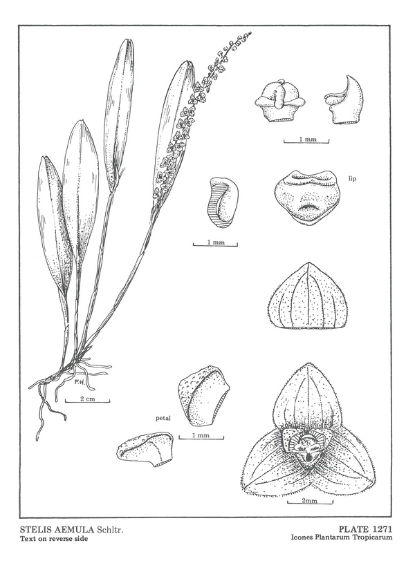 Stelis aemula Schltr. 1918 SUBGENUS Stellata SECTION Disticha purpurescens alliance Duque 2008 TYPE Photo by © Fritz Hamer/TYPE Drawing by © R Solano and The Herbario AMO Website