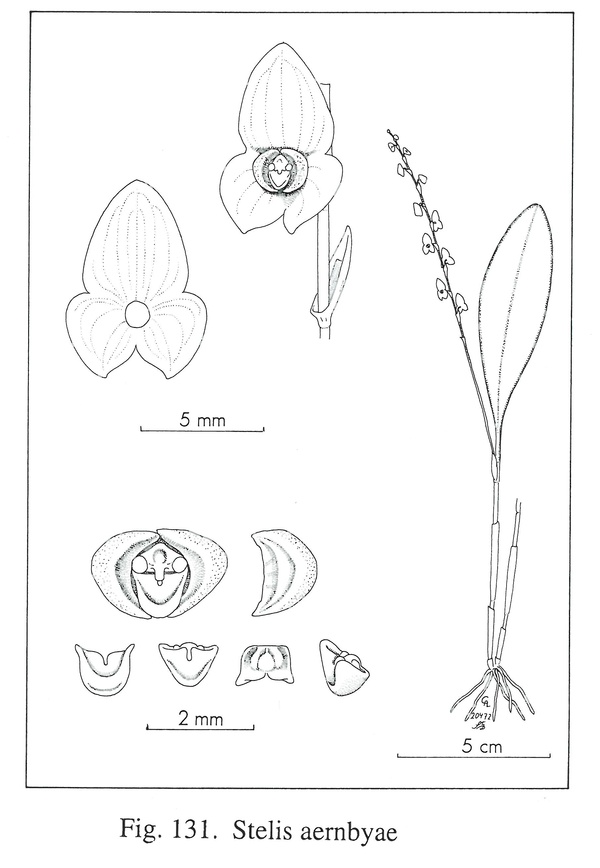 Stelis aernbyae Luer & Dalström 2004 SECTION Stelis Drawing by Carl Luer and The Swiss Orchid Foundation at the Jany Renz Herbaria Website
