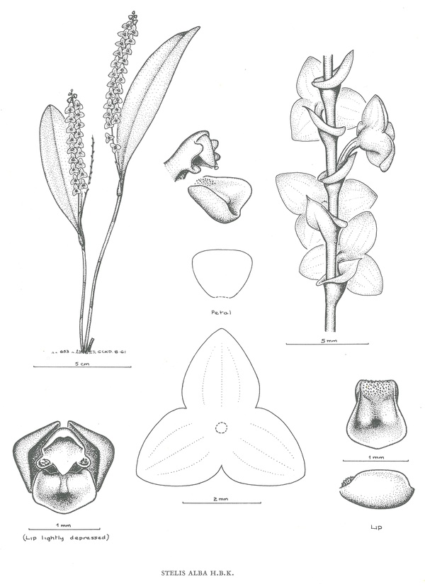 Stelis alba Kunth 1816 Drawing by © Dunsterville and Garay and The Swiss Orchid Foundation at the Jany Renz Herbaria Website