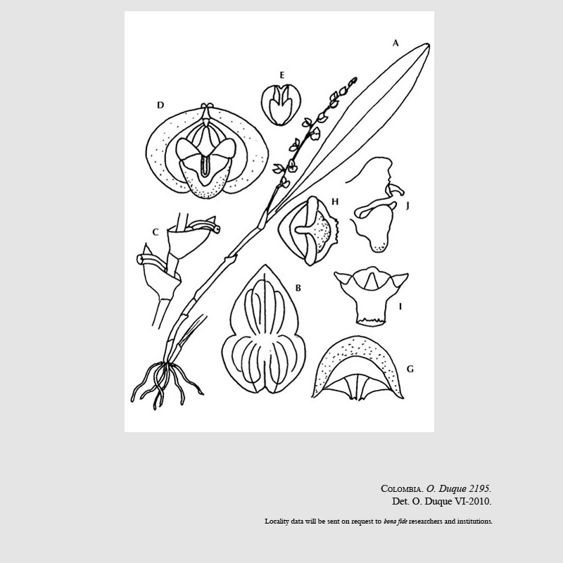 References W3 Tropicos, Kew Monocot list , IPNI ; *Orquideología Vol 27 #1 pg 5 Duque 2010 drawing/photo fide