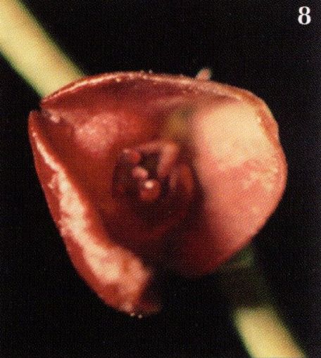 Found in Quindio Colombia at elevations around 2200 meters as a small sized, cold growing epiphyte with terete, erect ramicauls with a tubular sheath near the middle and 1 to 2 others at the base and carrying a single, erect, coriaceous, elliptical, acute, tridenticulate, cuneate below into the petiolate base leaf that blooms in the late spring and early summer on a erect, subdistichous, to 2.8” to 4” [7 to 10 cm] long including the .48” [1.2 cm] long peduncle, mostly simultaneously several flowered inflorescence arising through a small spathe below the apex of the ramicaul with cucullate, acute, purple bordered floral bracts.