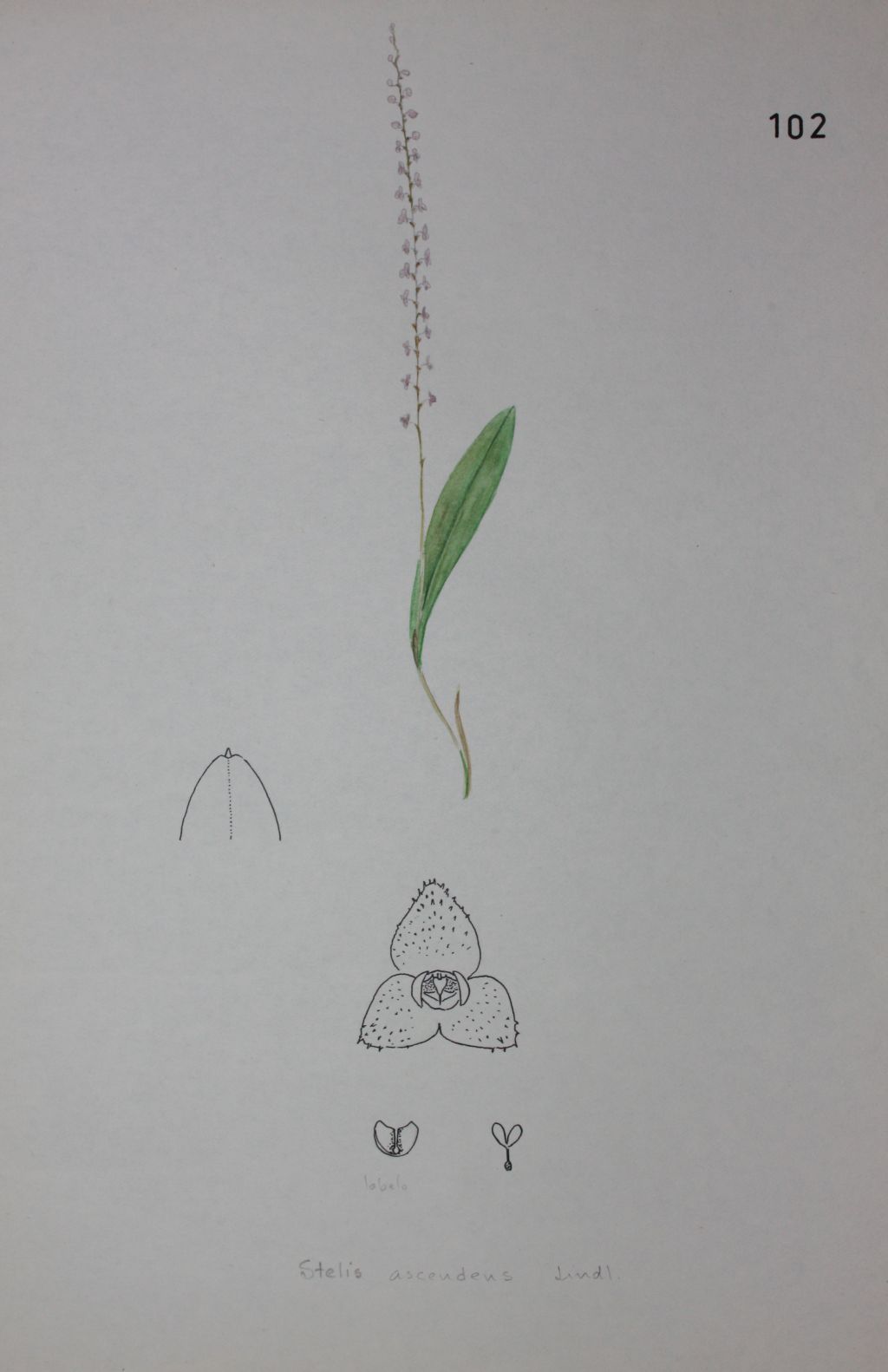 Stelis ascendens Lind. 1836 SECTION Isochilae Stelis Original Drawing by © Padre Pedro Ortiz Conserved at the Herbario de la Universidad Javeriana, Bogota Colombia