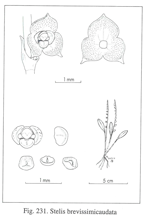 Stelis brevissimicaudata Luer & Hirtz 2007 SECTION Stelis Drawing by © Carl Luer and The Swiss Orchid Foundation at the Jany Renz Herbaria Website