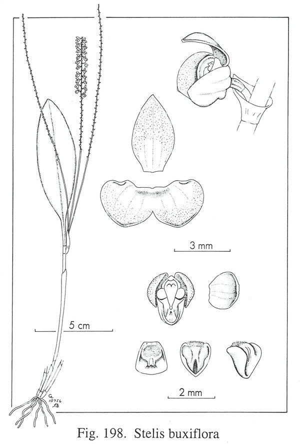 Stelis buxiflora Luer & Hirtz 2004 SECTION Labiatae Drawing by © Carl Luer and The Swiss Orchid Foundation at the Jany Renz Herbaria Website