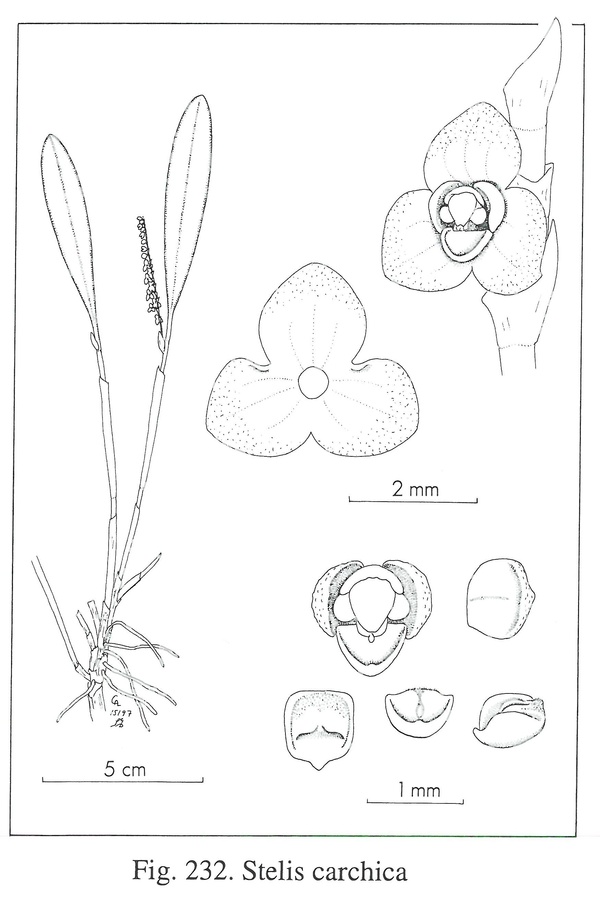 Stelis carchica Luer & Hirtz 2007 SECTION Stelis Drawing by © Carl Luer and The Swiss Orchid Foundation at the Jany Renz Herbaria Website