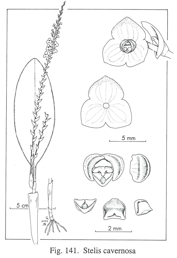 Stelis cavernosa Luer & Hirtz 2004 SECTION Stelis Drawing by © Carl Luer and The Swiss Orchid Foundation at the Jany Renz Herbaria Website