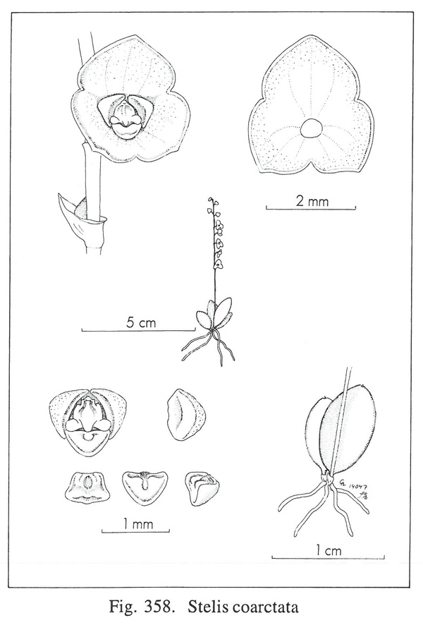 Stelis coarctaca Luer 2009 SECTION Stelis Drawing by © Carl Luer and The Swiss Orchid Foundation at the Jany Renz Herbaria Website