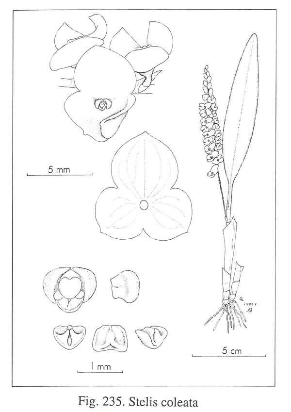 Stelis coleata Luer & Hirtz 2007 SECTION Stelis Drawing by © Carl Luer and The Swiss Orchid Foundation at the Jany Renz Herbaria Website