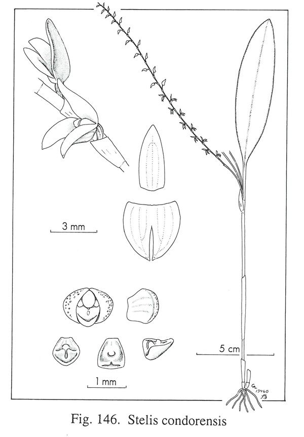 Stelis condorensis Luer & Hirtz 2004 SECTION Stelis Drawing by © Carl Luer and The Swiss Orchid Foundation at the Jany Renz Herbaria Website