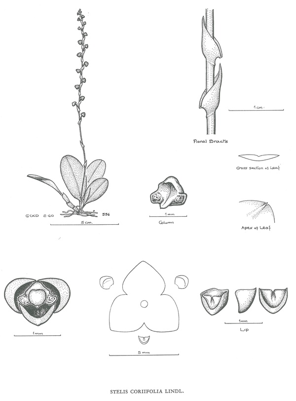 Stelis coriifolia Lindl. 1859 Drawing by © Dunsterville and The Swiss Orchid Foundation at the Jany Renz Herbaria Website