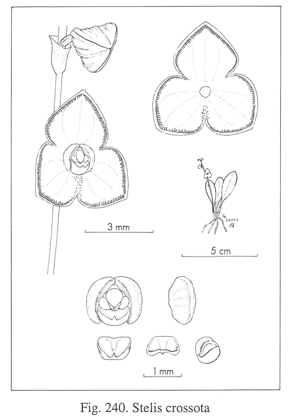 Stelis crossota Luer & Hirtz 2007 SECTION Stelis Drawing by © Carl Luer and The Swiss Orchid Foundation at the Jany Renz Herbaria Website