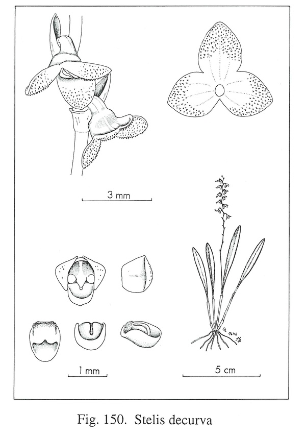 Stelis decurva Luer 2004 SECTION Stelis Drawing by © Carl Luer and The Swiss Orchid Foundation at the Jany Renz Herbaria Website
