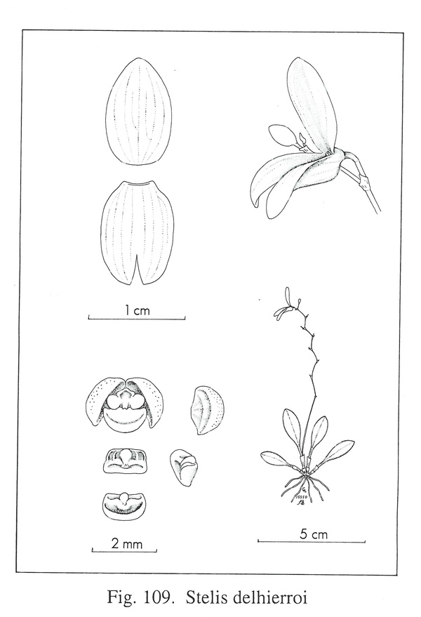 Stelis delhierroi Luer & Hirtz 2004 SECTION Humboldtia Drawing by © Carl Luer and The Swiss Orchid Foundation at the Jany Renz Herbaria Website