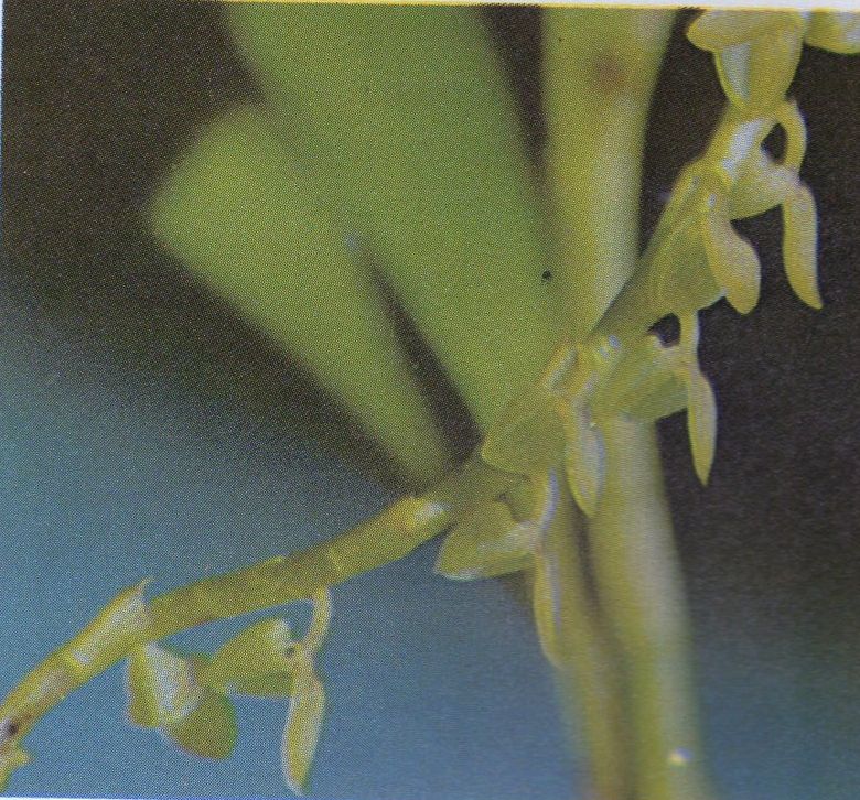 Found in Guatemala, El Salvador, Honduras, Nicaragua, Costa Rica and Panama at elevations around 1400 to 1500 meters as a mini-miniature to miniature sized, a cool growing epiphyte with erect, slender ramicauls enveloped by 2 tubular sheaths and carrying a single, apical, erect, coriaceous, narrowly oblong-ligulate, shortly apiculate, cuneate below into the petiolate base leaf that blooms on an erect, laxly many flowered inflorescence with ovate-cucullate, acuminate floral bracts.
