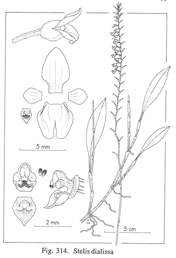 Stelis dialissa Rchb.f. 1855 SECTION Humboldtia Drawing by © Carl Luer and The Epidendra Website