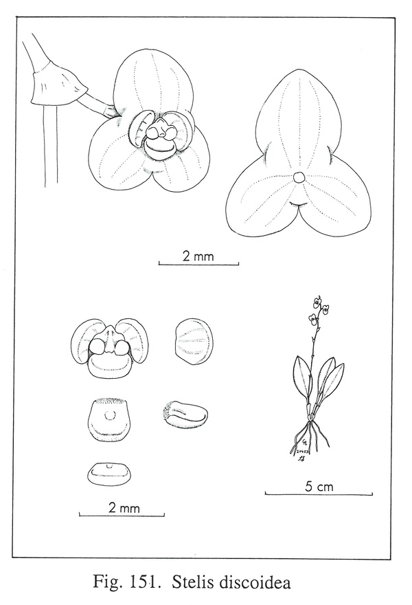 Stelis discoidea Luer & Dalströem 2004 SECTION Stelis Drawing by © Carl Luer and The Swiss Orchid Foundation at the Jany Renz Herbaria Website