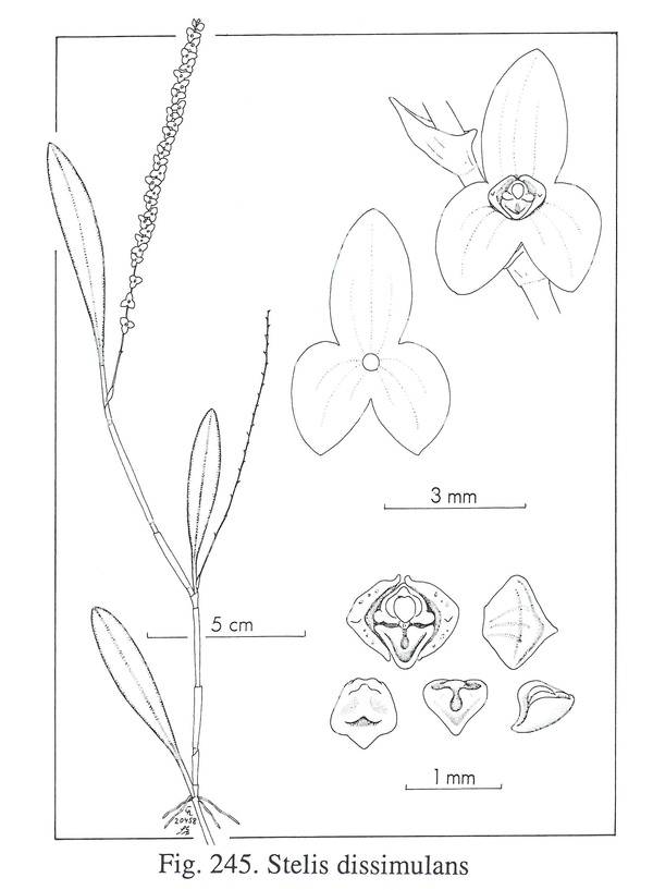 Stelis dissimulans Luer & Dodson 2007 SECTION Stelis Drawing by © Carl Luer and The Swiss Orchid Foundation at the Jany Renz Herbaria Website
