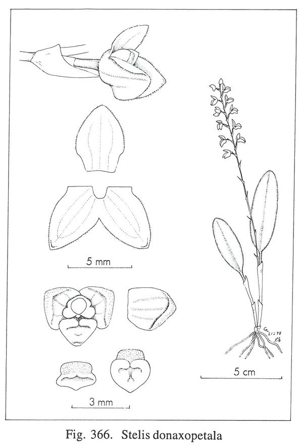 Stelis donaxopetala Luer 2009 SECTION Stelis Drawing by © Carl Luer and The Swiss Orchid Foundation at the Jany Renz Herbaria Website