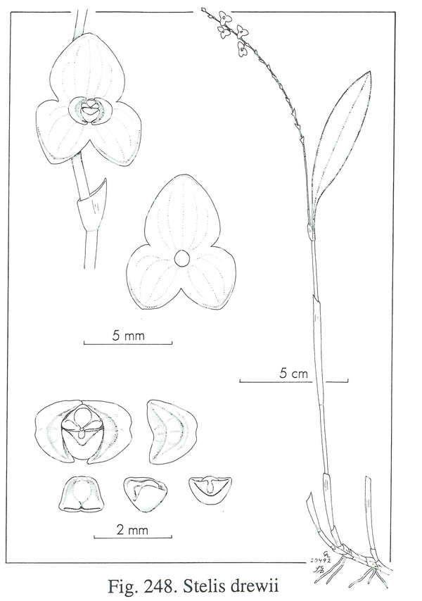 Stelis drewii Luer & Endara 2007 SECTION Stelis Drawing by © Carl Luer and The Swiss Orchid Foundation at the Jany Renz Herbaria Website