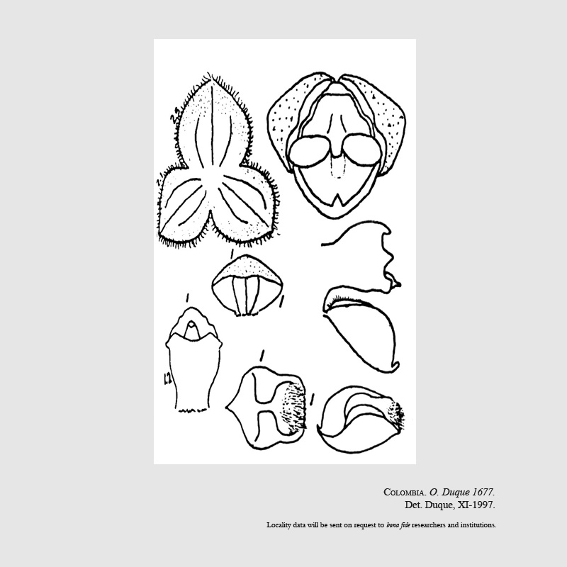 References W3 Tropicos, Kew Monocot list , IPNI ; *Orquideología Vol 20 #3 pg 341–342, pl. 10 Duque 1997 Drawing/photo fide; Orchidaceae Stelis Swartz A Compendium Duque 2008 drawing fide;