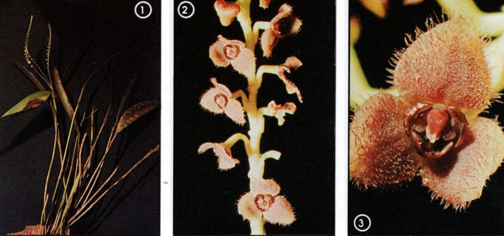 Found in Antioquia department of Colombia at elevations around 1800 to 2300 meters as a small to medium sized, cool to cold growing epiphyte with erect, stout ramicauls with a tubular sheath on the middle third and 2 others at the base and carrying a single, apical, erect, coriaceous, oblong-ellitpical, obtuse, tridenticulate, cuneate below into the petiolate base leaf that blooms in the spring on 1 to 3, erect, distichous, 4 to 4.4" [9 to 15 cm] long including the peduncle, mostly simultaneously many flowered inflorescence arising through a spathe from an annulus from below the apex of the ramicaul and has navicular-apiculate floral bracts and carrying non-resupinate, slightly pendulous flowers