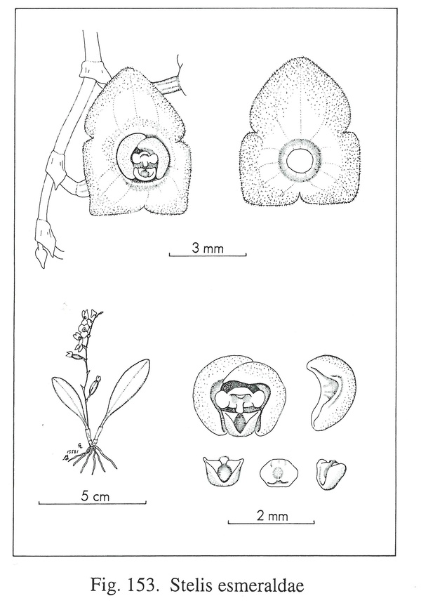 Stelis esmeraldae Luer & Hirtz 2004 SECTION Stelis Drawing by © Carl Luer and The Swiss Orchid Foundation at the Jany Renz Herbaria Website