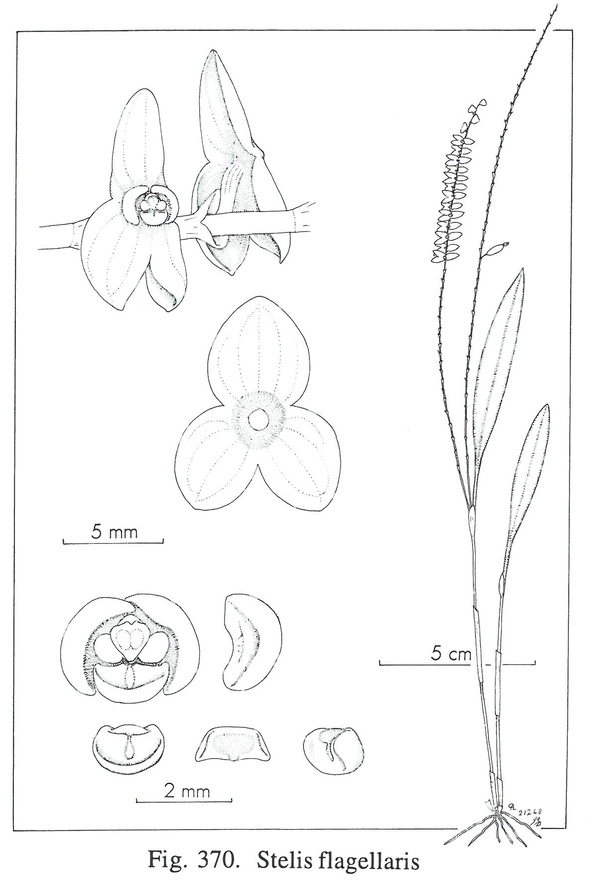 Stelis flagellaris Luer & Hirtz 2009 SECTION Stelis Drawing by © Carl Luer and The Swiss Orchid Foundation at the Jany Renz Herbaria Website