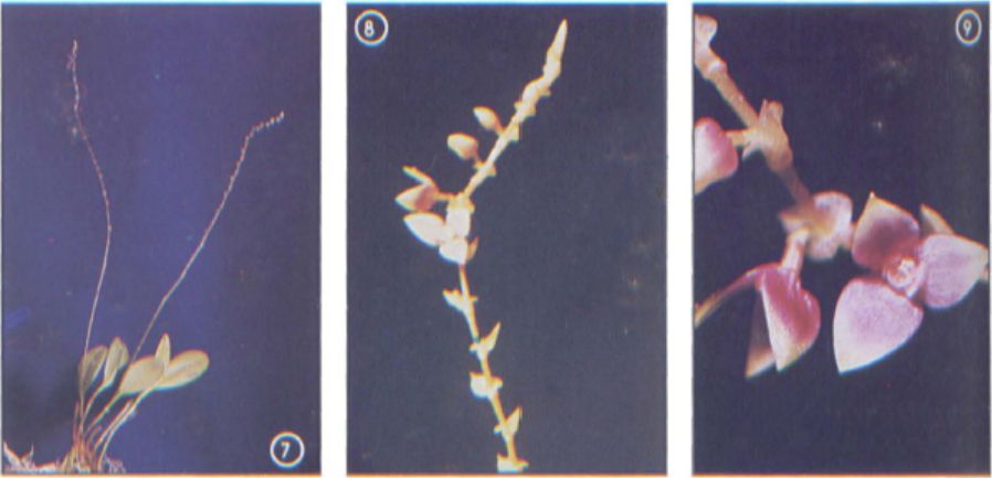 Found in Antioquia department of Colombia in cloud forest at elevations around 2200 meters as a mini-miniature sized, cold growing epiphyte with erect ramicauls enveloped by 3 fibrous sheaths and carrying a single, apical, erect, coriaceous, oblong, obtudse, tridenticulate, narrowly below into the petiolate base leaf that blooms in the late fall and early winter on an erect, slender, 9.6" [to 24 cm] long including the 7.6" [19 cm] long peduncle, mostly simultaneously several flowered inflorescence arising through a long spathe with navicular-cordate, oblique, acute floral bracts carrying irregulaily arranged flowers.