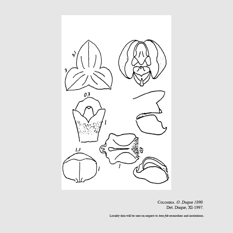 References W3 Tropicos, Kew Monocot list , IPNI ; *Orquideología Vol 20 # 3 pg 343, 346–347, 350, pl. 11, 1 Duque 1997 drawing/photo fide