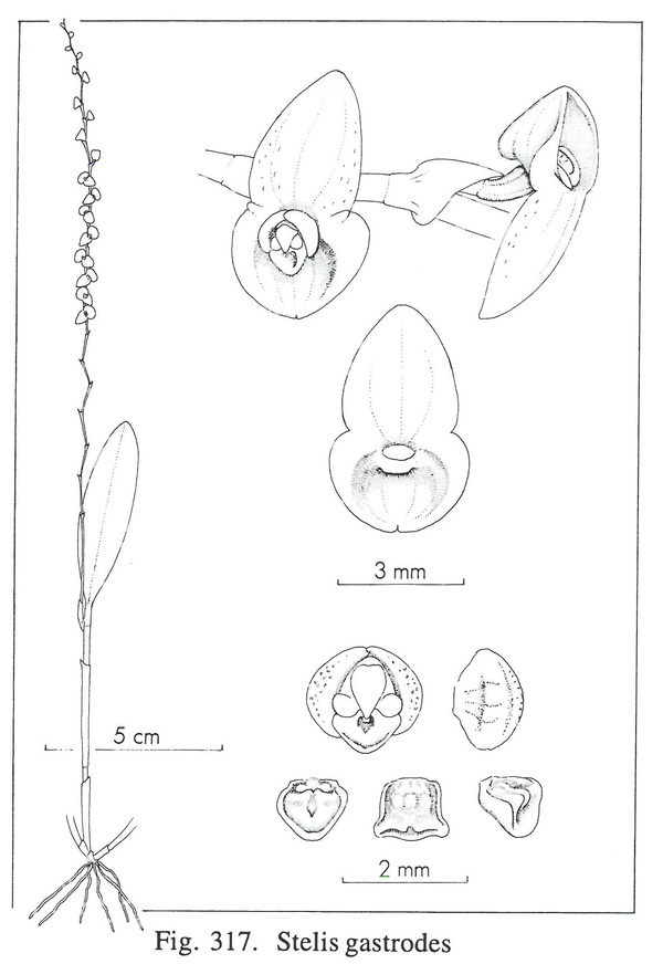 Stelis gastrodes Luer & Hirtz 2009 SECTION Humboldtia Drawing by © Carl Luer and The Swiss Orchid Foundation at the Jany Renz Herbaria Website