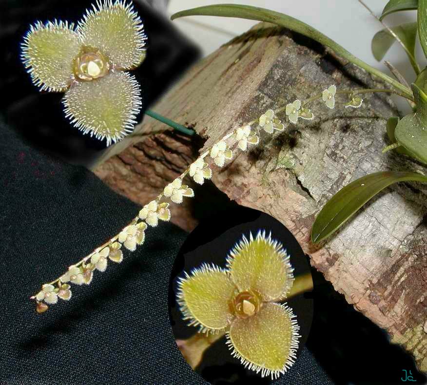 Found in Minas Gerais, Espirito Santo and Rio de Janiero states of Brazil at elevations of 900 to 1400 meters as a small sized, warm to cool growing epiphyte with erect ramicauls enveloped by 2 to 3, tubular sheaths and carrying a single, apical, erect, coriaceous, elliptic-oblong, obtuse, gradually narrowing below into the shortly petiolate base leaf that blooms in the spring on a twice as long as the leaf, racemose, subsecund, erect to slightly flexuous, to 7.2" [18 cm] long, many flowered inflorescence with cucullate-ovate, shortly apiculate floral bracts