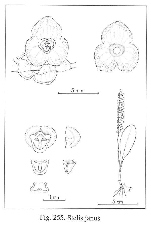 Stelis janus Luer & Hirtz 2007SECTION Stelis Drawing by © Carl Luer and The Swiss Orchid Foundation at the Jany Renz Herbaria Website