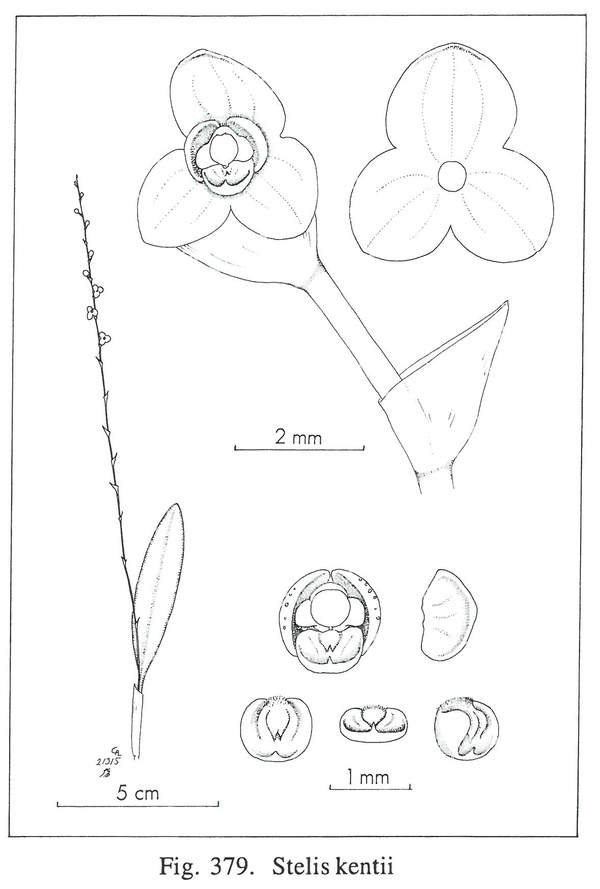 Stelis kentii Luer 2009 SECTION Stelis Drawing by © Luer and The Swiss Orchid Foundation at he Jany Renz Herbaria Website